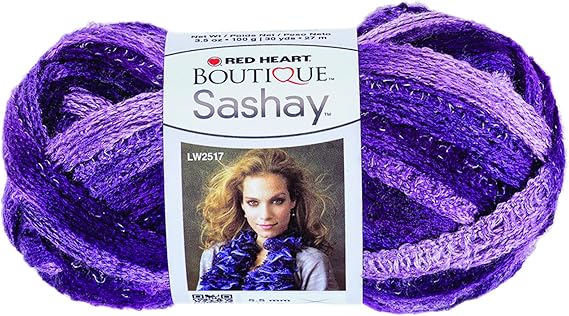 Sashay is the best ruffle scarf yarn that I have personally used. It creates the traditional ruffle scarf without having to do a ton of extra crochet stitches! In fact, you can work up a scarf in a matter of minutes if you know what you're doing. This yarn is acrylic, but due to the delicate ruffle material, you will need to hand wash scarves made from this.