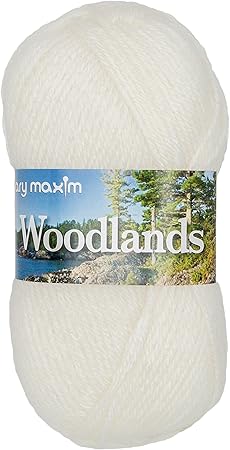 Woodlands yarn is a favorite of mine. It is a fuzzy, warm blend of acrylic and alpaca. Each ball is 3.5 oz with 200 yards. It is available on Amazon, but you will probably get a better deal if you buy on the Mary Maxim website.